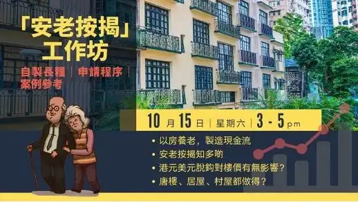 你是否想利用房產實現房養老,但不知道如何入手呢?在這個工作坊中,我們將會探討如何利用安老按揭來實現房養老和現金 …